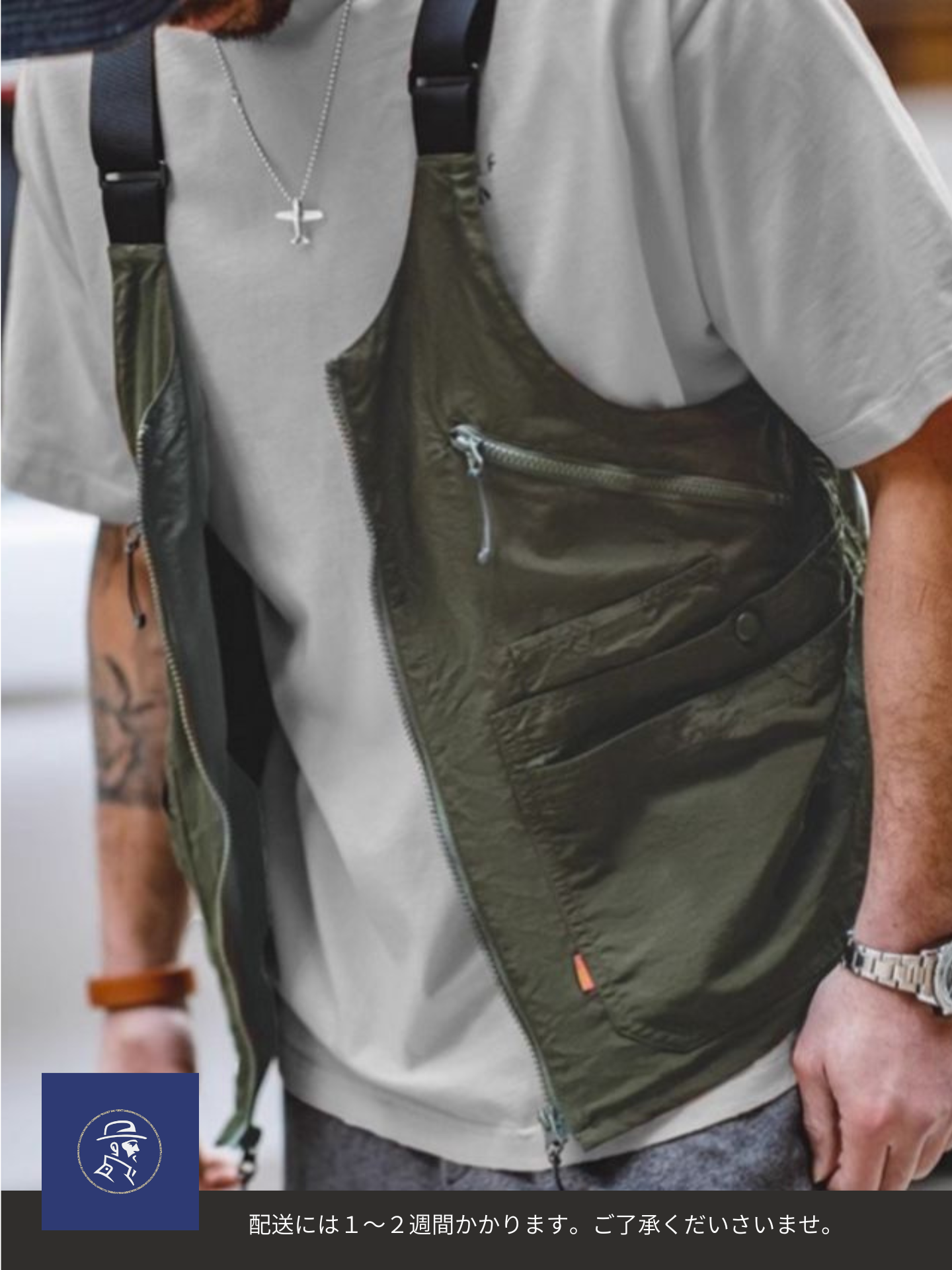 「アメリカンレトロ・マルチポケットベスト」は、無骨さと機能性を両立したユニセックスデザイン。
