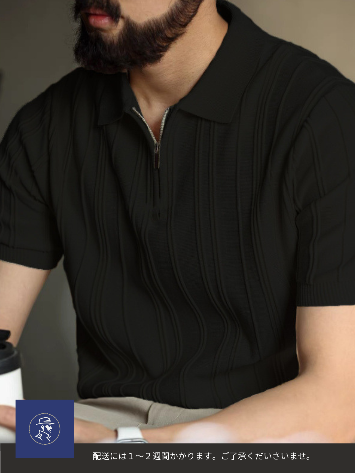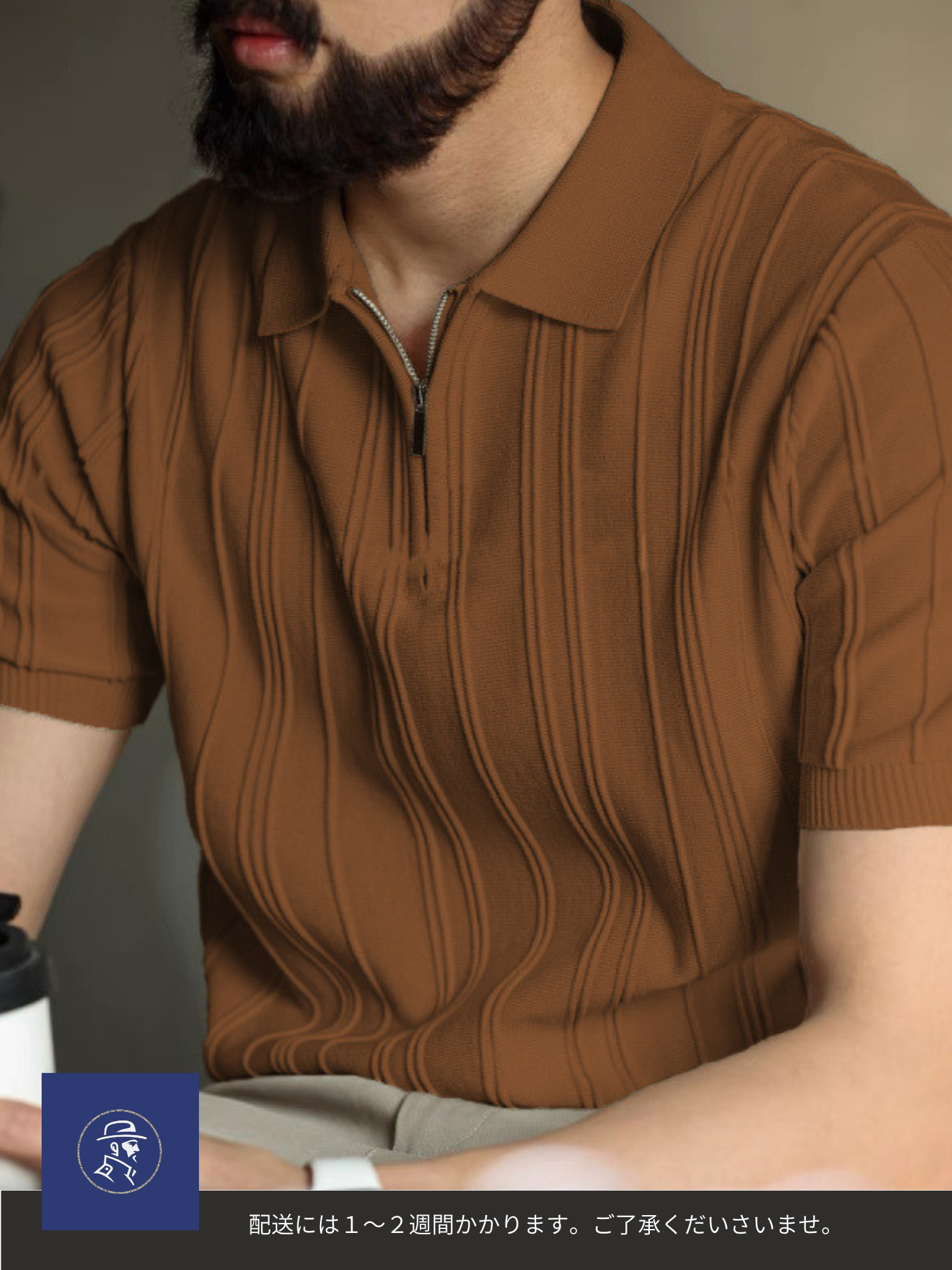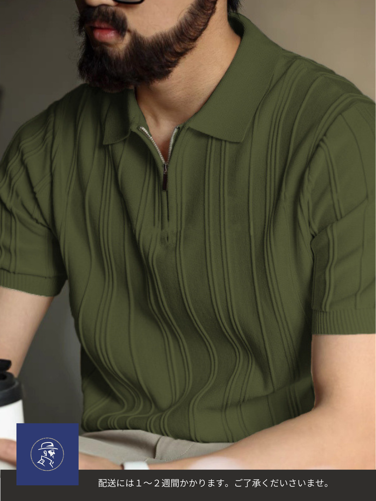 ニットポロシャツは、落ち着いた雰囲気と柔らかな着心地を両立させた一枚。